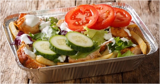Onze grote kapsalon shoarma bestaat uit friet, shoarma, salade en afgemaakt met gesmolten kaas en saus naar keuze.